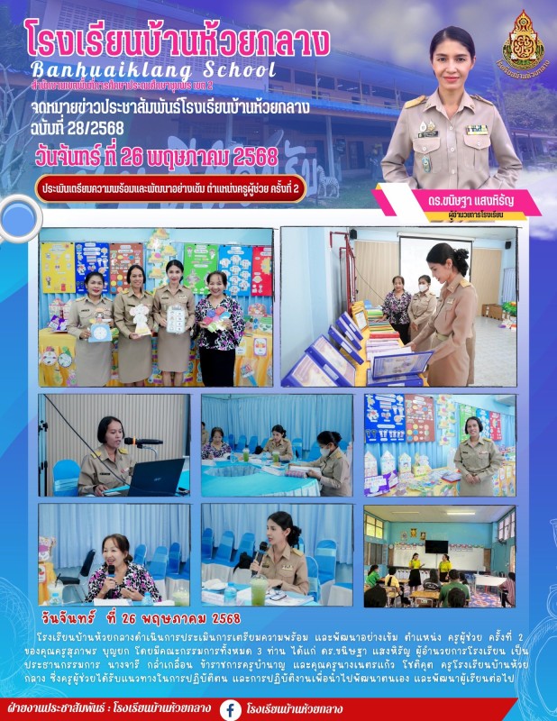 โรงเรียนบ้านห้วยกลาง จัดกิจกรรมการประเมินการเตรียมความพร้อม และพัฒนาอย่างเข้ม ตำแหน่ง ครูผู้ช่วย ครั้งที่ 2 ของคุณครูสุภาพร บุญยก